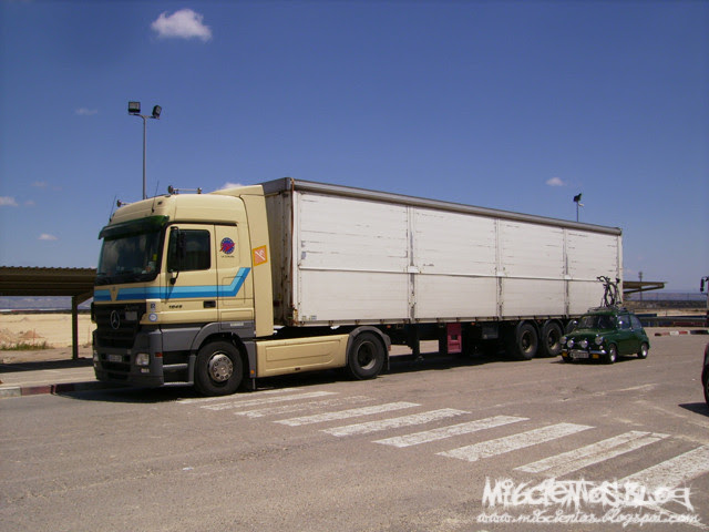 Cuando estuvimos listos emprendimos la marcha no sin antes parar en la gasolinera para llenar de nuevo el deposito, y donde un hombre me pidio permiso para que sus compañeros de viaje le hiciesen una foto montado en el coche. Como no teníamos prisa por lo que el viaje se haría como el viaje de ida, con una media de 80 a 100 km/h con las respectivas paradas a comer y repostar. A diferencia del viaje de ida nos encontramos con muchos camiones, de los cuales uno con nacionalidad rumana estuvo jugando conmigo al raton y al gato, al parecer al conductor no le gustaba que le adelantase subiendo las cuestas y aprovechaba las bajadas para tomar impulso y volverse a adelantarme (no hay fotos). No pasó lo mismo con un camionero español, que me adelanto y con el pulgar hacia arriba me dio su aprobación a la vez que tocaba la bocina.